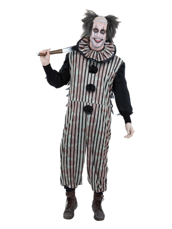 Creepy Clown Costume, Red & Blue, All In One, Neck Ruffle & Mask