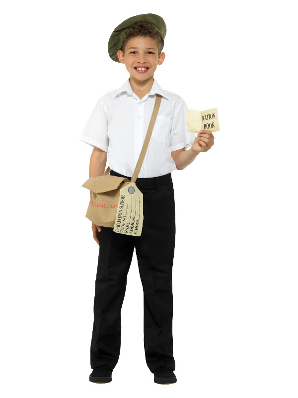 Evacuee Boy Kit, Green, with Jumper, Attached Mock Shirt, Hat, Bag & Tag