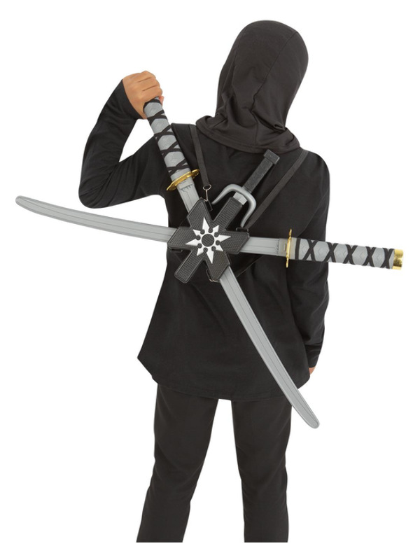 Ninja Assassin Back Pack, Black , with 2 Swords 72cm, 2 Daggers & Star, Suitable for 14+