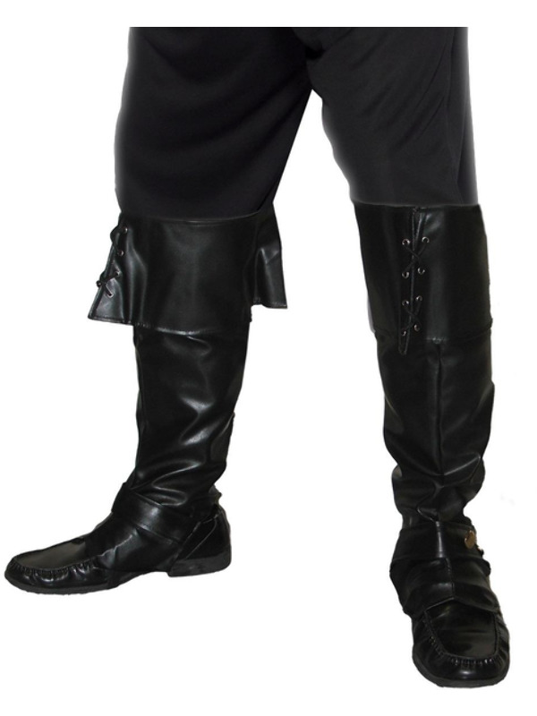 Pirate Lady Costume, Black, with Top, Trousers, Attached Boot Covers, Neck Ruffle & Belt