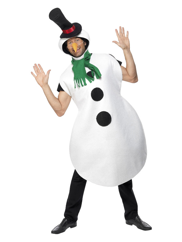 Snowman Costume, White, with Tabard, Scarf, Hat & Carrot Nose